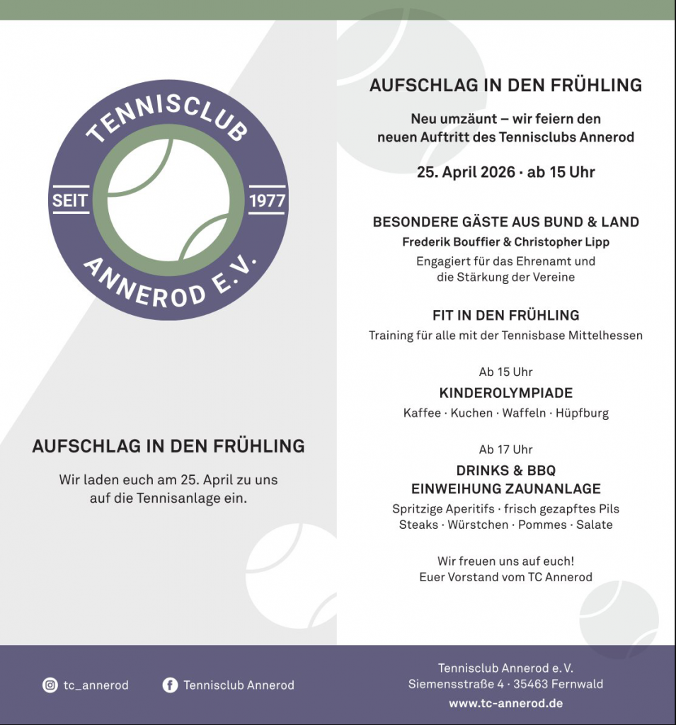 Herzlich willkommen auf der Homepage des TC Annerod!